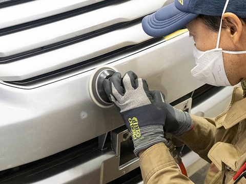 事故による車体のへこみやキズの修理はお任せください。大切な愛車のキレイを支えます。